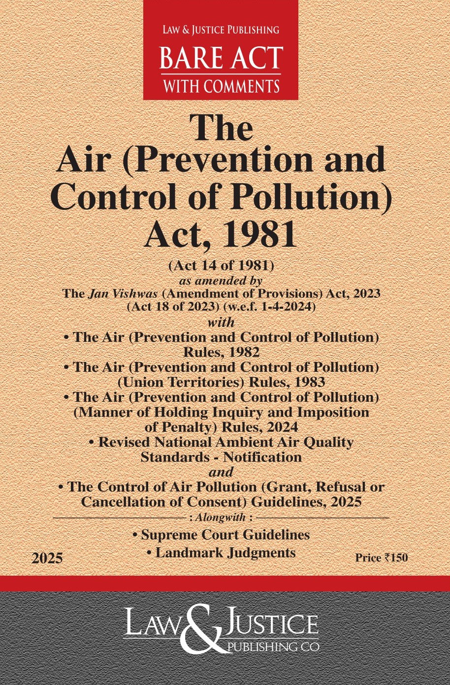 The Air (Prevention and Control of Pollution) Act, 1981 is a cornerstone environmental legislation enacted to prevent, control, and abate air pollution in India and to establish statutory authorities for maintaining ambient air quality standards. This 2025 updated edition, published by Law & Justice Publishing Co., incorporates all amendments up to date, including the significant changes introduced by the Jan Vishwas (Amendment of Provisions) Act, 2023 (Act 18 of 2023), effective from 1 April 2024.