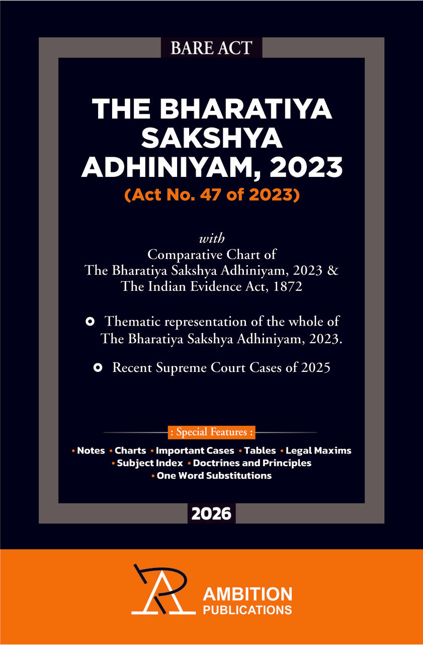 This updated Bare Act edition provides a clear and authoritative text of the Bharatiya Sakshya Adhiniyam, 2023, along with a comparative chart highlighting changes and continuities between the new law and the erstwhile Indian Evidence Act, 1872. The inclusion of thematic representations helps readers understand the structure and flow of evidentiary provisions with ease.