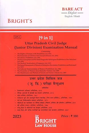 The book contains the authentic Bare Acts of nine key laws, carefully selected as per the UP Judicial Services syllabus. Compiled in a clear, systematic, and exam-oriented manner, this manual enables aspirants to quickly revise statutory provisions and strengthen conceptual clarity.